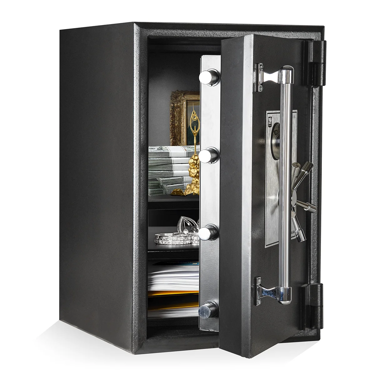 The Inkas Titan UL TL-30 High Security Safe offers advanced protection against sophisticated burglary attempts. Certified to withstand 30 minutes of assault from all six sides using tools like cutting torches and power tools, it provides a formidable barrier against unauthorized access. Constructed with a 4″ thick body and door, reinforced with ballistic steel plates, and equipped with a sophisticated glass relocking system, this safe ensures maximum security. It also boasts a 2-hour fire resistance rating, safeguarding your valuables from extreme heat.